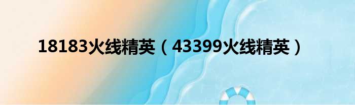 大家好,小活来为大家解答以上的问题。18183火线精英,43399火线精英这个很多人还不知道,现在让我们一起来看看吧!
