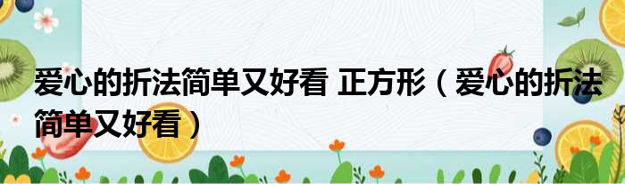 以上就是爱心的折法简单又好看这篇文章的一些介绍,希望对大家有所帮助。
