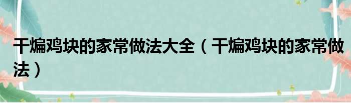 以上就是干煸鸡块的家常做法这篇文章的一些介绍,希望对大家有所帮助。