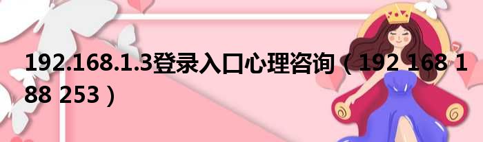你们好,最近小活发现有诸多的小伙伴们对于192.168.1.3登录入口心理咨询,192 168 188 253这个问题都颇为感兴趣的,今天小活为大家梳理了下,一起往下看看吧。