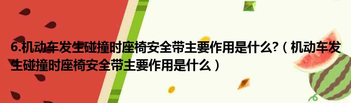 大家好,小活来为大家解答以上的问题。6.机动车发生碰撞时座椅安全带主要作用是什么?,机动车发生碰撞时座椅安全带主要作用是什么这个很多人还不知道,现在让我们一起来看看吧!