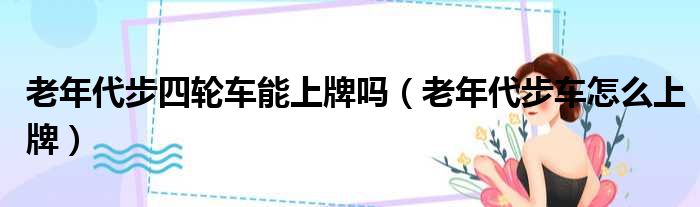 大家好,小活来为大家解答以上的问题。老年代步四轮车能上牌吗,老年代步车怎么上牌这个很多人还不知道,现在让我们一起来看看吧!