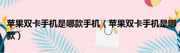 你们好,最近小活发现有诸多的小伙伴们对于苹果双卡手机是哪款手机,苹果双卡手机是哪款这个问题都颇为感兴趣的,今天小活为大家梳理了下,一起往下看看吧。