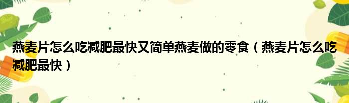 以上就是燕麦片怎么吃减肥最快这篇文章的一些介绍,希望对大家有所帮助。