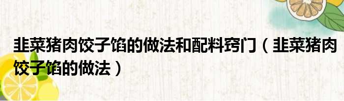以上就是韭菜猪肉饺子馅的做法这篇文章的一些介绍,希望对大家有所帮助。