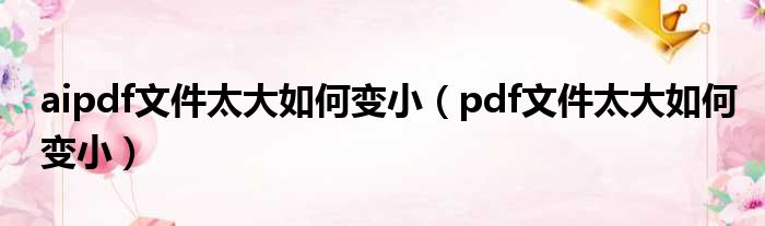 你们好,最近小活发现有诸多的小伙伴们对于aipdf文件太大如何变小,pdf文件太大如何变小这个问题都颇为感兴趣的,今天小活为大家梳理了下,一起往下看看吧。