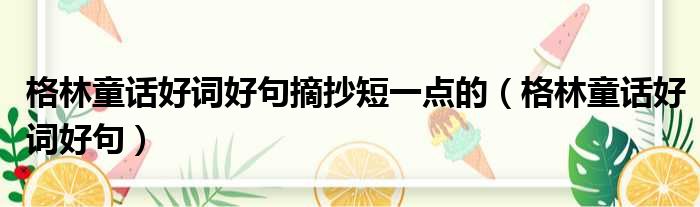 大家好,小活来为大家解答以上的问题。格林童话好词好句摘抄短一点的,格林童话好词好句这个很多人还不知道,现在让我们一起来看看吧!