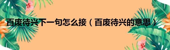 大家好,小活来为大家解答以上的问题。百废待兴下一句怎么接,百废待兴的意思这个很多人还不知道,现在让我们一起来看看吧!