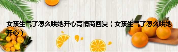 你们好,最近小活发现有诸多的小伙伴们对于女孩生气了怎么哄她开心高情商回复,女孩生气了怎么哄她开心这个问题都颇为感兴趣的,今天小活为大家梳理了下,一起往下看看吧。