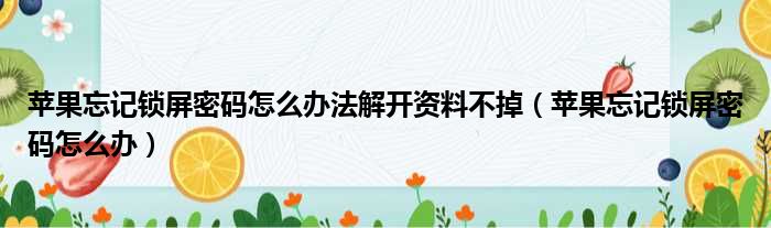 你们好,最近小活发现有诸多的小伙伴们对于苹果忘记锁屏密码怎么办法解开资料不掉,苹果忘记锁屏密码怎么办这个问题都颇为感兴趣的,今天小活为大家梳理了下,一起往下看看吧。