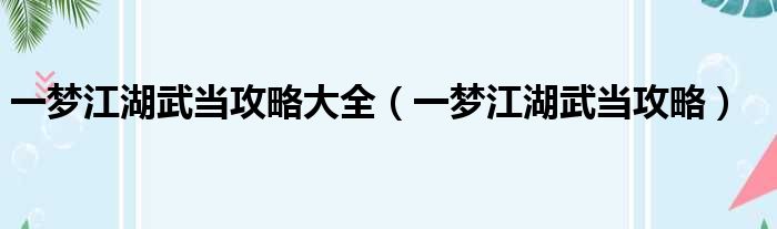 你们好,最近小活发现有诸多的小伙伴们对于一梦江湖武当攻略大全,一梦江湖武当攻略这个问题都颇为感兴趣的,今天小活为大家梳理了下,一起往下看看吧。
