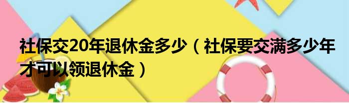 大家好,小活来为大家解答以上的问题。社保交20年退休金多少,社保要交满多少年才可以领退休金这个很多人还不知道,现在让我们一起来看看吧!