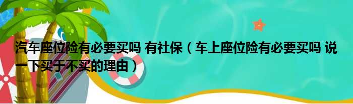 大家好,小活来为大家解答以上的问题。汽车座位险有必要买吗 有社保,车上座位险有必要买吗 说一下买于不买的理由这个很多人还不知道,现在让我们一起来看看吧!