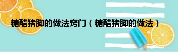 以上就是糖醋猪脚的做法这篇文章的一些介绍,希望对大家有所帮助。