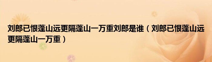 大家好,小活来为大家解答以上的问题。刘郎已恨蓬山远更隔蓬山一万重刘郎是谁,刘郎已恨蓬山远更隔蓬山一万重这个很多人还不知道,现在让我们一起来看看吧!