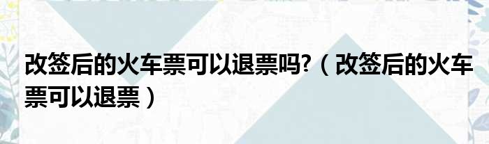 大家好,小活来为大家解答以上的问题。改签后的火车票可以退票吗?,改签后的火车票可以退票这个很多人还不知道,现在让我们一起来看看吧!