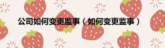 大家好,小活来为大家解答以上的问题。公司如何变更监事,如何变更监事这个很多人还不知道,现在让我们一起来看看吧!