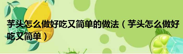 大家好,小活来为大家解答以上的问题。芋头怎么做好吃又简单的做法,芋头怎么做好吃又简单这个很多人还不知道,现在让我们一起来看看吧!