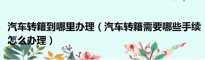 大家好,小活来为大家解答以上的问题。汽车转籍到哪里办理,汽车转籍需要哪些手续怎么办理这个很多人还不知道,现在让我们一起来看看吧!