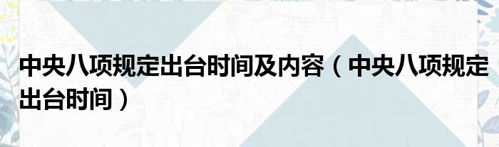 大家好,小活来为大家解答以上的问题。中央八项规定出台时间及内容,中央八项规定出台时间这个很多人还不知道,现在让我们一起来看看吧!