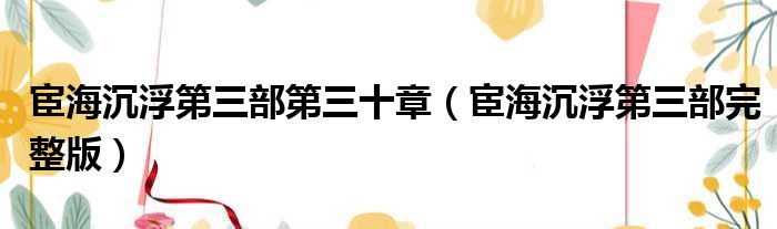 大家好,小活来为大家解答以上的问题。宦海沉浮第三部第三十章,宦海沉浮第三部完整版这个很多人还不知道,现在让我们一起来看看吧!