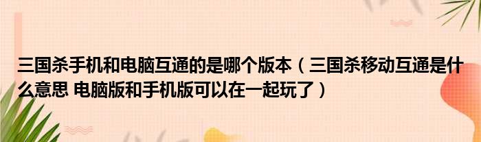 三国杀手机和电脑互通的是哪个版本(三国杀移动互通是什么意思 电脑版和手机版可以在一起玩了),这个问题折磨我三天了,求帮忙!
