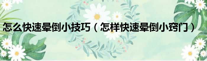 你们好,最近小活发现有诸多的小伙伴们对于怎么快速晕倒小技巧,怎样快速晕倒小窍门这个问题都颇为感兴趣的,今天小活为大家梳理了下,一起往下看看吧。